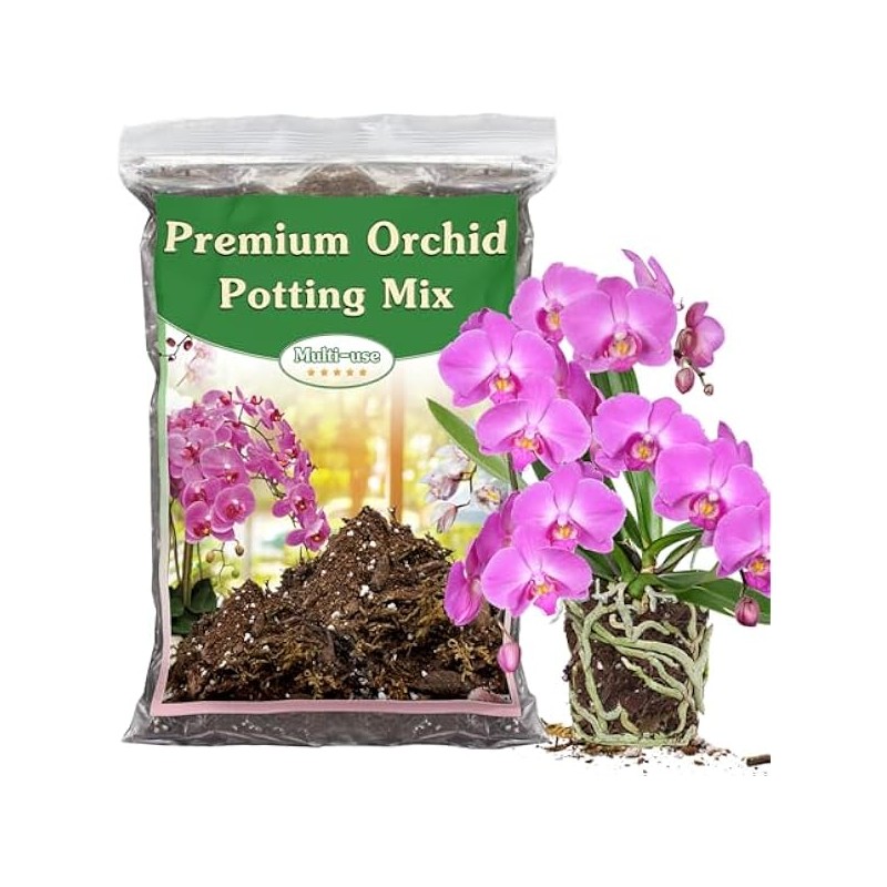 Orchid Potting Mix,1 Quart Premium Orchid Potting Mix for Repotting with Dried Forest Moss Perlite Stone Coco Peat and Pine Bark, Well-draining Orchid Bark Potting Mix