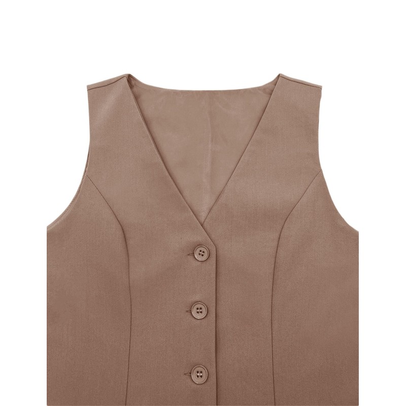 Orchidays Women's Business V Neck Sleeveless Vests Fully Lined Button Up Regular Fitted Jacket Waistcoats (Brown,Medium,Medium)