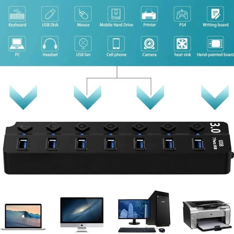 Enhance Your Connectivity: Elevate your device connectivity with the Orco USB 3.0 Hub. It expands one USB port into 7, making it a breeze to connect hard drives, flash drives, and other USB devices. Lightning-Fast Data Transfers: Experience the thrill of rapid data transfers at an astounding 5Gbps speed. Whether you're syncing important documents or massive multimedia files, this hub handles it all effortlessly. Total Device Control: Gain unprecedented control with seven individual power switches. No more fumbling with unplugging devices—simply flick the switch. The built-in LED indicators provide peace of mind. Safety First: Rest easy knowing your devices are protected. The Orco USB hub offers over-current and instant-current protection, ensuring the safety of your precious gadgets. Effortless Setup, Universal Compatibility: Say goodbye to complex software installations. This hub is truly plug and play. With its elegant design, sturdy build, and compatibility with various operating systems, it's the perfect addition to your setup.