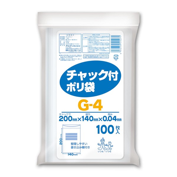 Ordi G-4 Zipper Plastic Bags, Transparent, 100 Pieces, Width 5.5 x Length 7.9 inches (14 x 20 cm), Thickness 0.04 inches (0.04 mm), Writing Column Included
