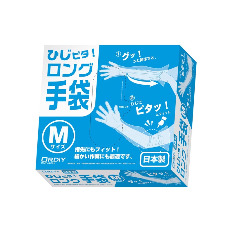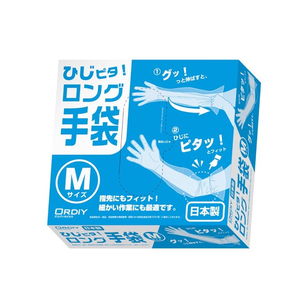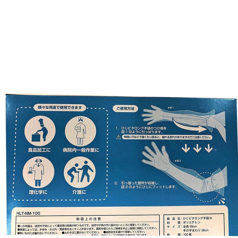 Ordi HLT-NM-100 Disposable Gloves, Long, M, Transparent, 100 Pieces, No Rubber, Fits Elbows, Non-Slip, Use Up, Polyethylene Gloves, Elbow Pita Long