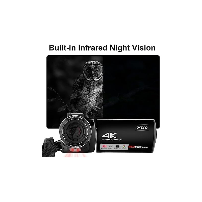 ORDRO Video Camera 4K Camcorder UHD 2160P 48MP Digital Camera Night Vision Camcorder Camera Recorder 3 inch IPS Touchscreen Vlogging Camera