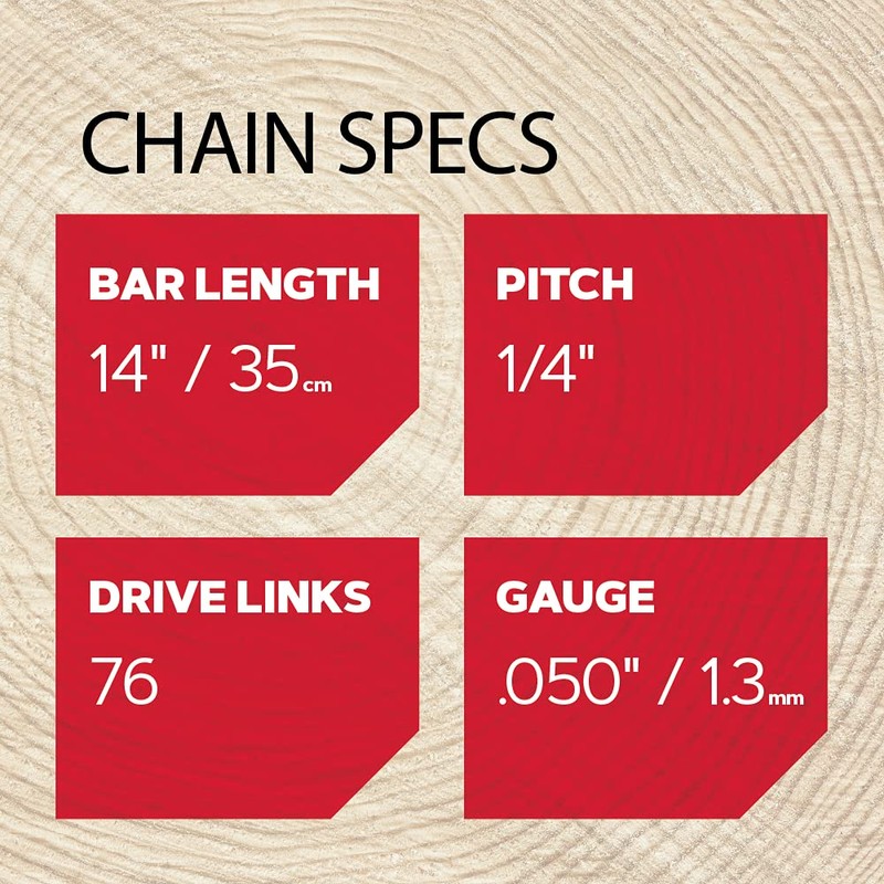 - Low vibration, semi-chisel cutter For 1/4" Pitch/.050" (1.3mm) Gauge/76 Lines/14" Guide Bars