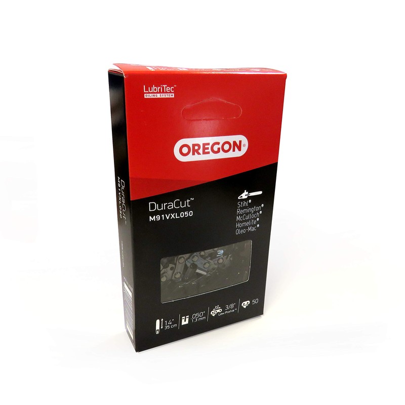 Oregon DuraCut .3/8" Low Profile Pitch, .050" (1.3 mm) Gauge Micro Chisel Chainsaw Chain for 14 Inch Bar - 50 Drive Links - fits Stihl, Mc Culloch, Jonsered, and more (M91VXL)