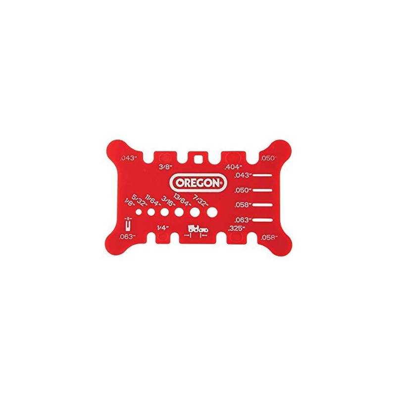 - Measures the chain pitch, Bar groove width, chain gauge and file size.