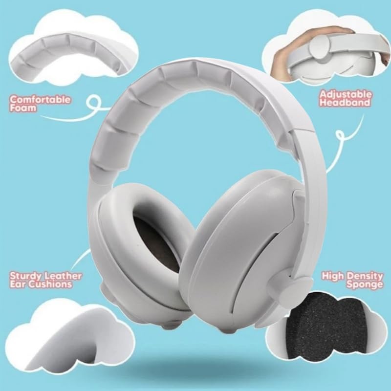 - 【Adjustable Headband】Estas orejeras tienen una diadema ajustable, se puede ajustar de acuerdo con el tamaño de la circunferencia de la cabeza de su bebé, la diadema tiene una esponja suave que no ejercerá presión sobre la circunferencia de la cabeza de su bebé.