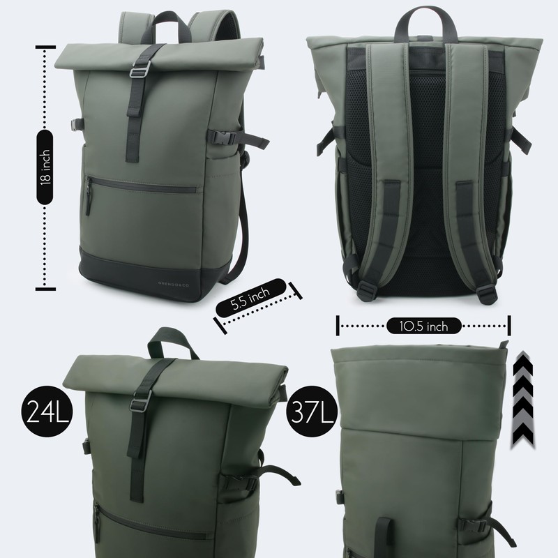 ORENDO&CO Signature Rolltop Backpack (Green)