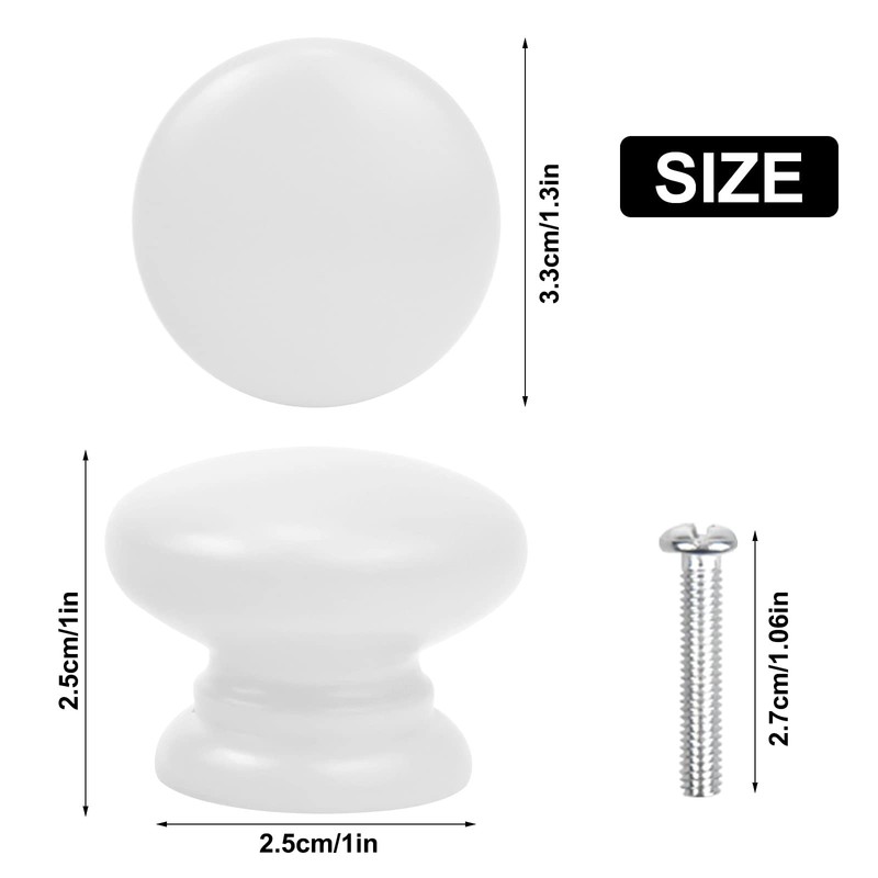 - Size: Single hole furniture knobs in size 33 x 25 mm, suitable for large and small cabinets, drawers, cupboards. The screw in length of 27 mm. Please make sure the thickness of your drawers before ordering.
