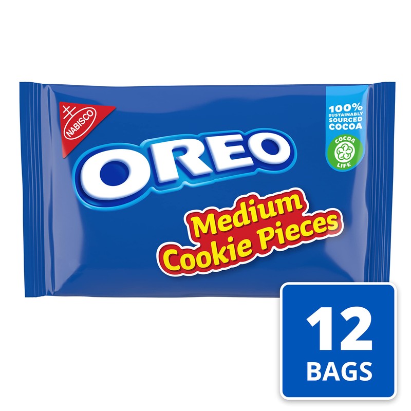 - Twelve 16 oz bags of OREO Chocolate Sandwich Cookies Medium Cookie Pieces (Packaging may vary)