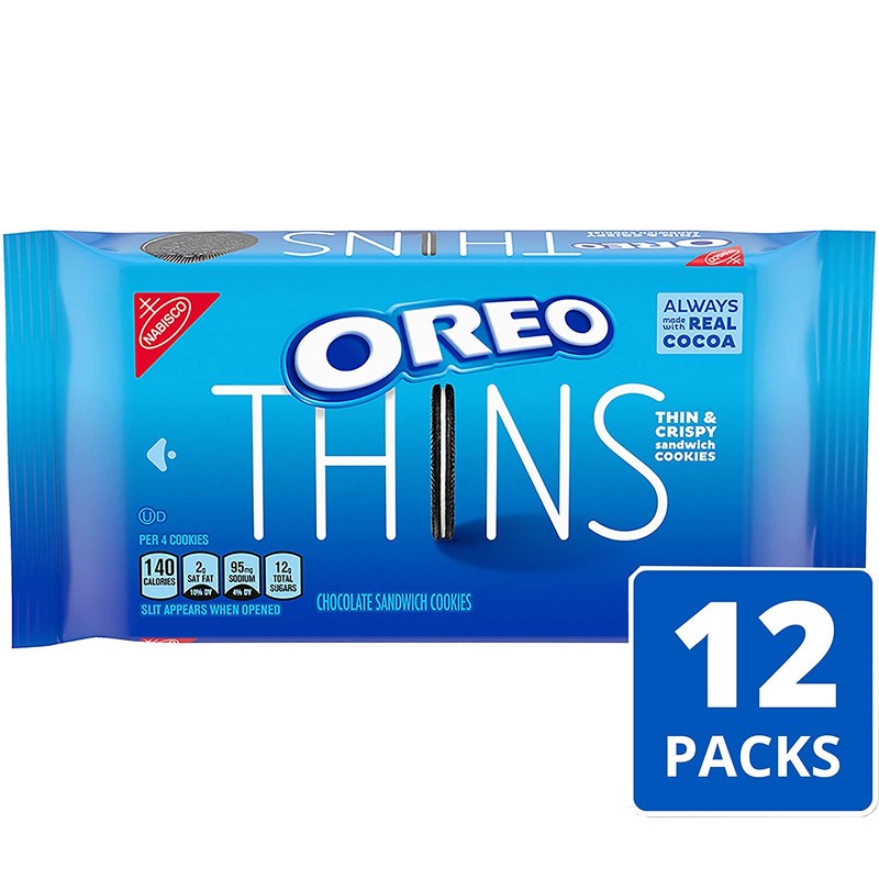 - Twelve 101 oz packages of OREO Thins Chocolate Sandwich Cookies
