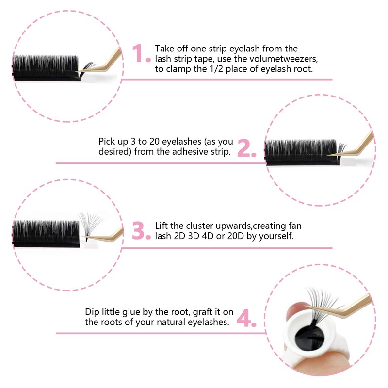 - Cluster in seconds: With special tweezers, the individual eyelashes are magically fanned out into 2, 3, 4, 5, 6 eyelashes in the adhesive area in seconds and show a mega volume. So you can save a lot of time in volume technique, easily get 2D, 3D, 4D, 5D, 6D eyelashes as desired.