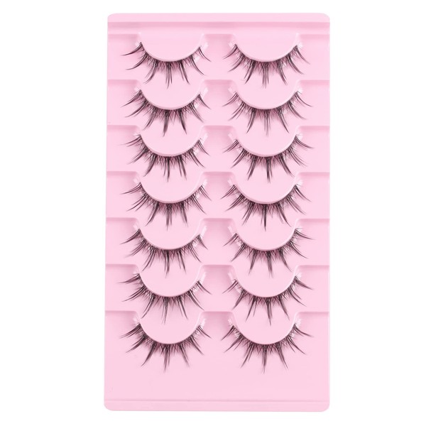 Oreola Manga Eyelashes with Clear Band Artificial Eyelashes Natural Delicate Spiky Eyelashes 7 Pairs Strip Eyelashes Crossed Anime Eyelashes Look Like Individual Eyelash Clusters