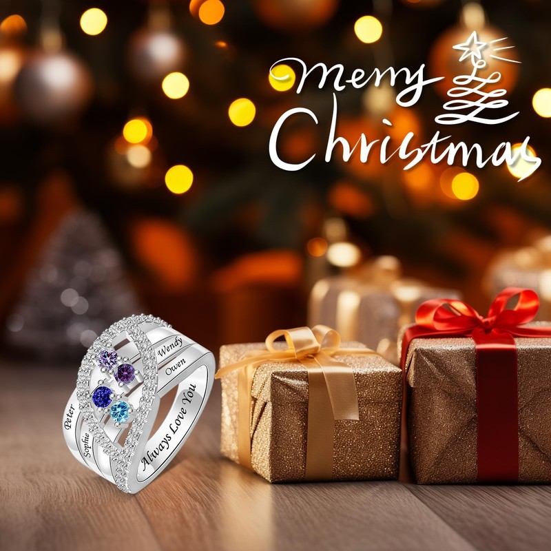 - Beautiful Ring Moral: This personalized ring with names and birthstones has beautiful moral, such as blessing, gratitude, love and care. At the same time, it can represent you to accompany her.