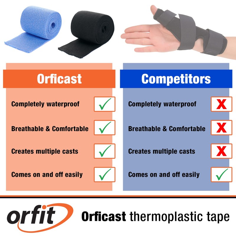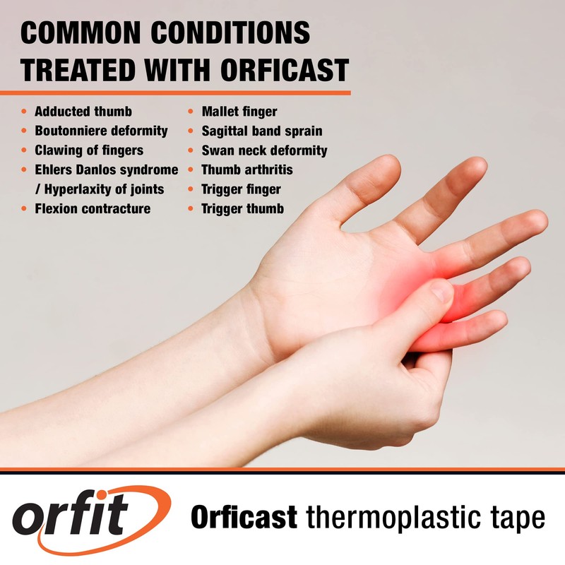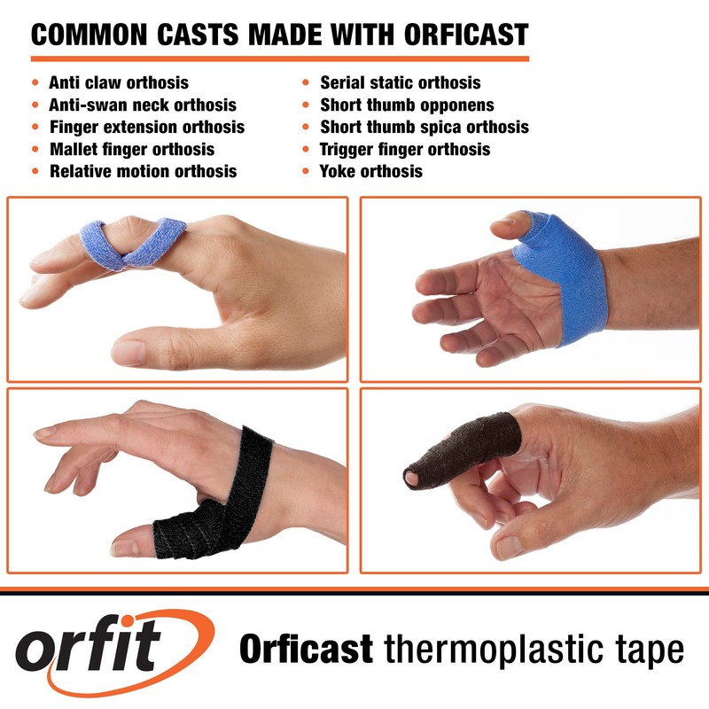 - MULTI-APPLICATION: Orficast thermoplastic tape is one of the most versatile products available. With Orficast, you can splint your thumb, finger, wrist to provide support and pain relief.