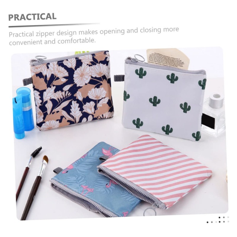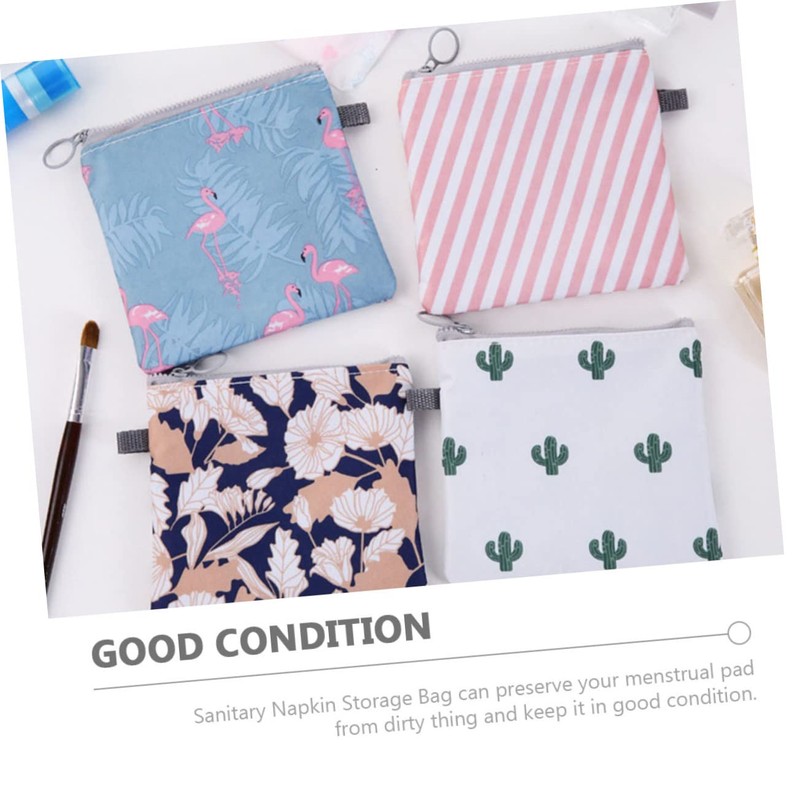 ORFOFE 4Pcs Sanitary Napkin Storage Bags Adorable Tampon Pouches for Feminine Products Cactus Flamingo Stripe Floral Designs Convenient Zip Closure for Period Essentials