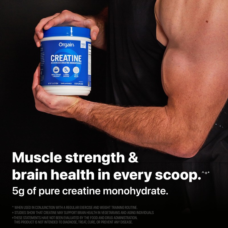 • GOOD FOR YOUR MUSCLES & MIND: Orgain Creatine Monohydrate Powder helps to improve muscle size, strength, power^*, and recovery from strength training*, and supports brain health energy across a variety of domains