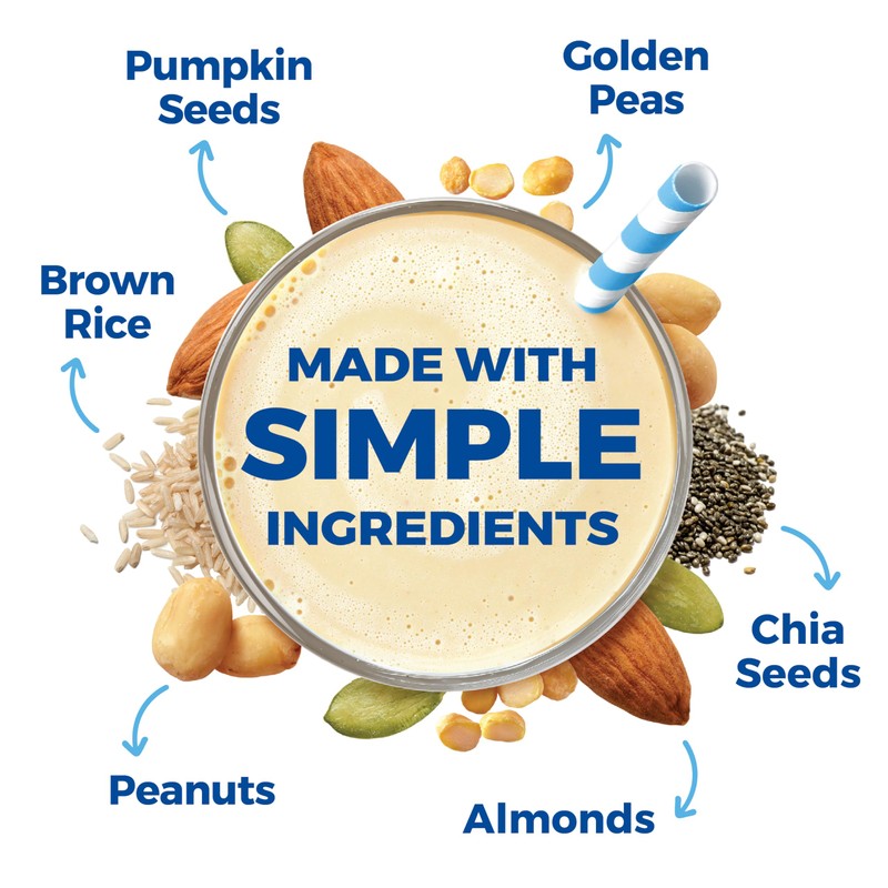 - : Our Simple Protein powder is crafted from high-quality, organic ingredients with names you can recognize and pronounce: Organic pea, Organic chia seeds, Organic pumpkin seeds, Organic almonds, Organic peanuts and Organic coconut sugar. It’s that simple.