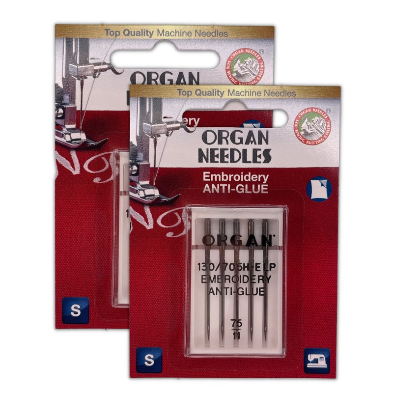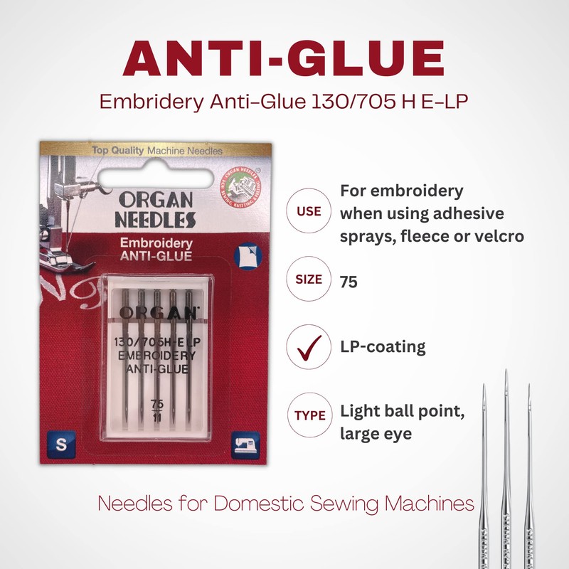 - ORGAN NEEDLES ANTI-GLUE especially good for embroidery with adhesive spray