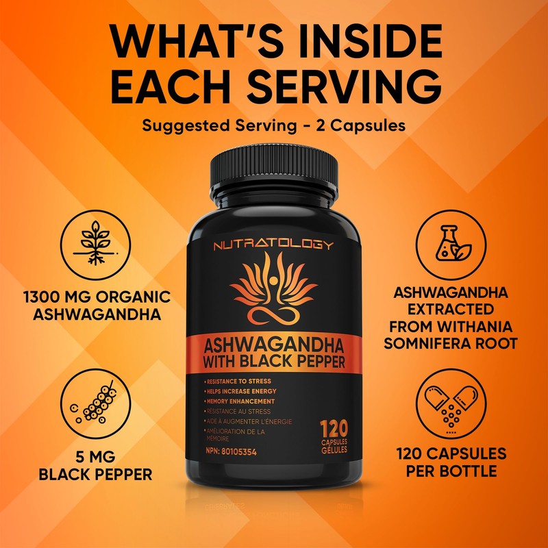 - Premium Quality - Nutratology's Organic Ashwagandha Capsules are sourced from Ashwagandha root & formulated with Black Pepper to ensure the optimum concentration of powerful anti-inflammatory properties. Ashwagandha has been used for centuries in Ayurvedic herbal medicine to help increase energy and resistance to stress.