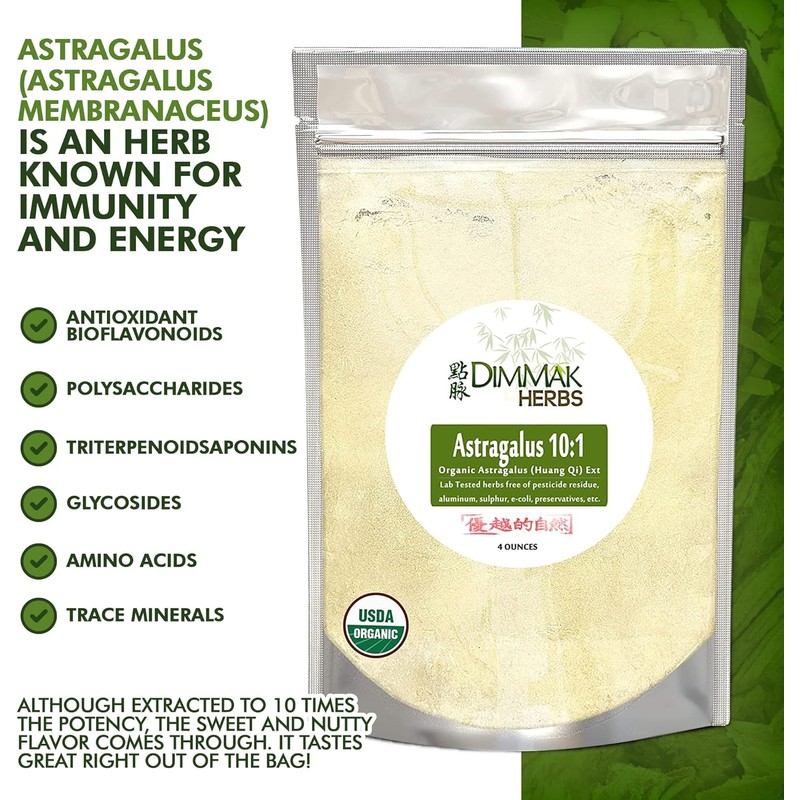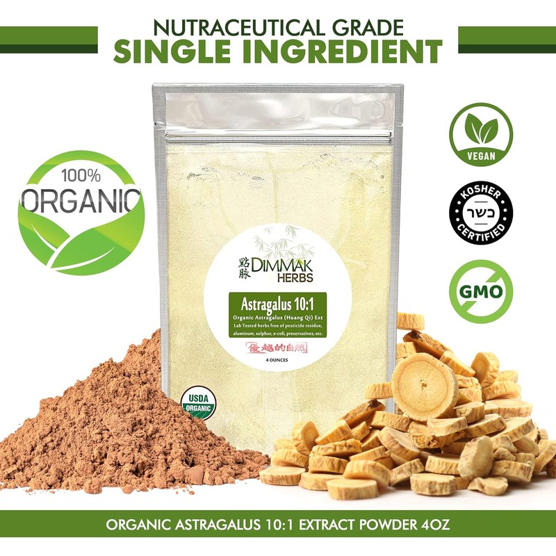 Organic Astragalus 10:1 Extract Powder | Huang Qi Concentrate Granules | Lab Tested, USDA Organic 4oz / 112g by Dimmak Herbs