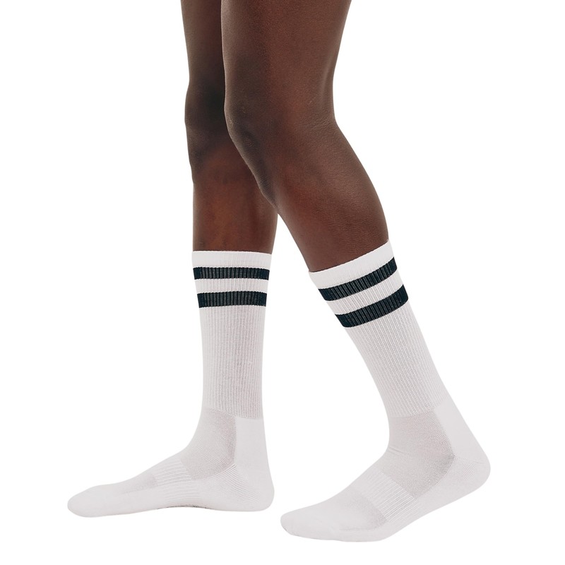 Organic Basics Unisex Core Stripe Crew Socks 2-pack, White/Black, 10-12