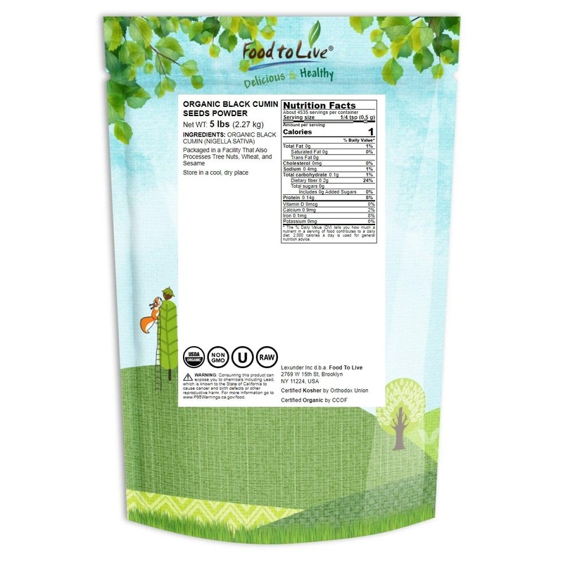 - ✔️ HANDY PACKAGING, AVAILABLE IN BULK: Food to Live’s Organic Black Cumin Seeds Powder is conveniently packaged in resealable bags and is available in budget-friendly bulk packs.