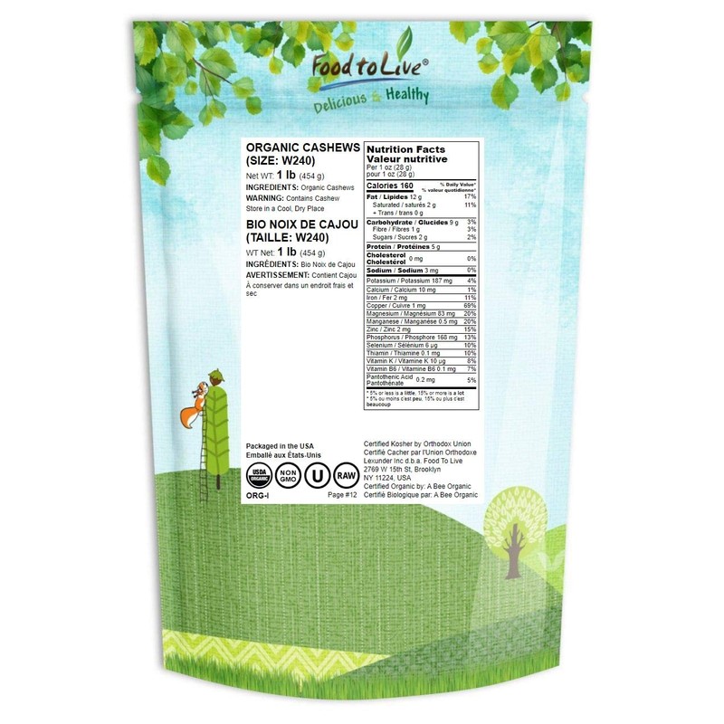 - If stored correctly, Food to Live Certified Organic Whole Cashews will remain fresh for months.