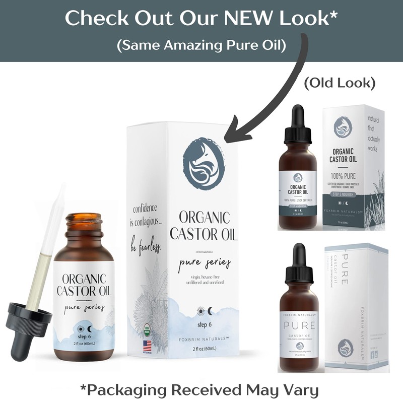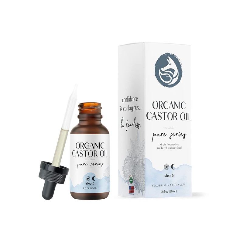 Organic Castor Oil - 2oz - 100% Pure - Cold Pressed - USDA Certified - Hexane Free - For Hair, Skin, Eyelashes, Eyebrows & Nails With Treatment Applicator Kit - by Foxbrim