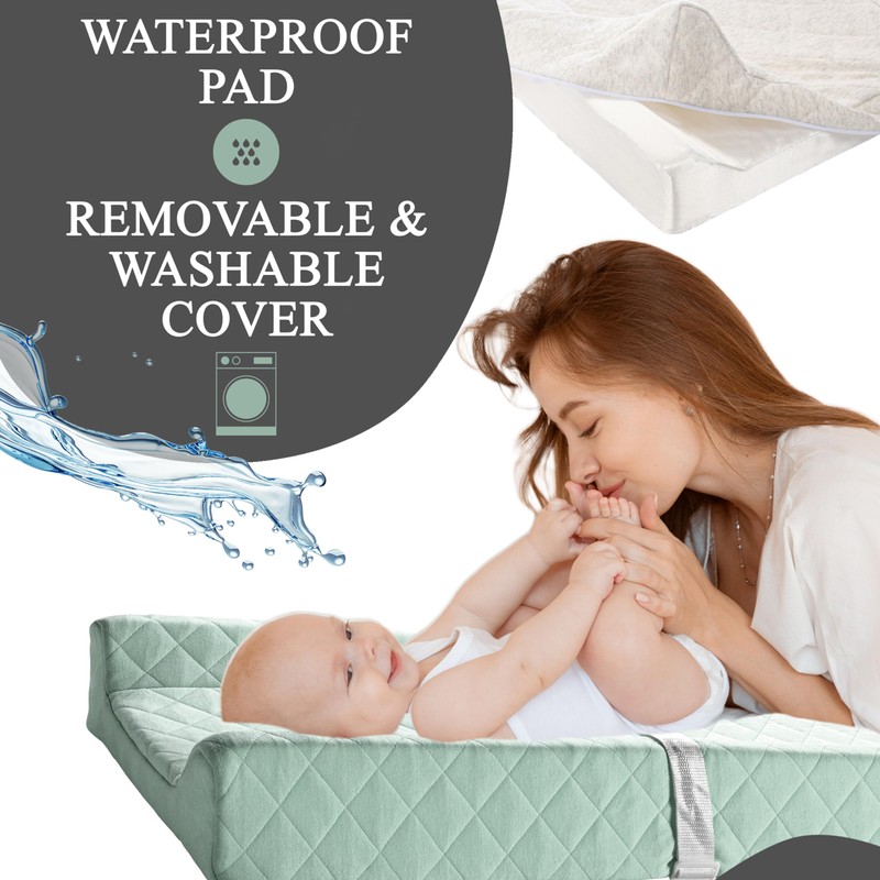 • ADJUSTABLE BELT & OTHER SAFETY FEATURES | Never Worry About Your Baby Squirming Around or Rolling Off the Table! Fasten the Built-In Safety Strap with Easy-Release Buckle Across Newborn’s Tummy to Keep Them Safe & Snug During Changing | Advanced Non-Skid Design Also Keeps the Bottom of the Pad Securely Gripped to Surface to Prevent Sliding