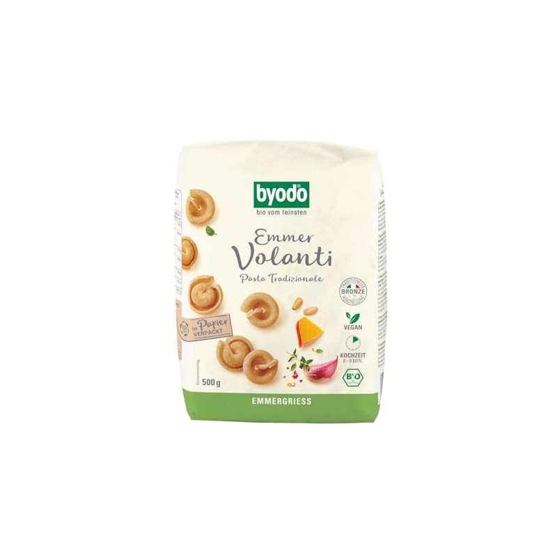 Organic Emmer Volanti Pasta, 500 g, Byodo | 100% Organic Ingredients | Traditional with Bronze Matrices | Perfect Al Dente Bite | Italian Emmergrit | Cooking Time 8-9 Minutes