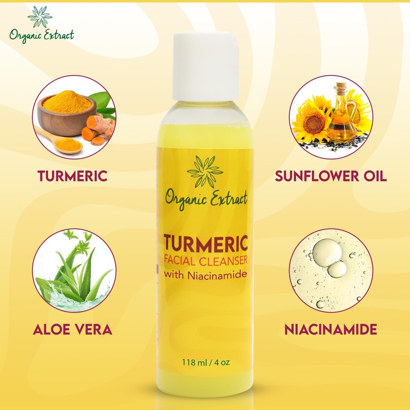 ORGANIC EXTRACT Turmeric Facial Cleanser - 4 fl oz / 118 ml - Gentle Face Cleanser for Dull, Acne Prone Skin - Exfoliating, Daily Facial Cleanser for Age Spots, Sun Damage - with Niacinamide
