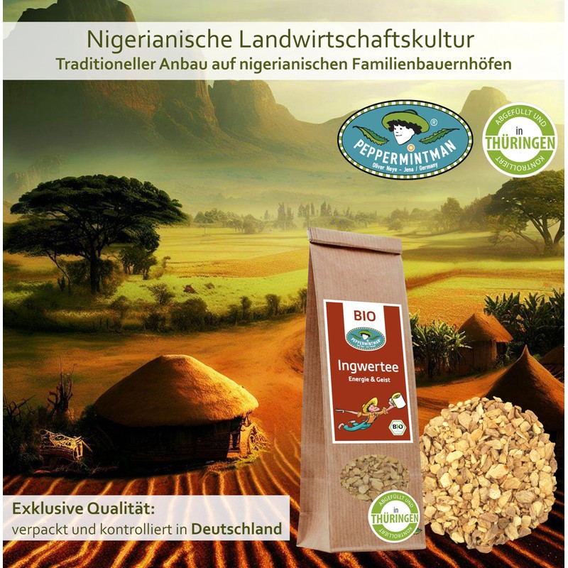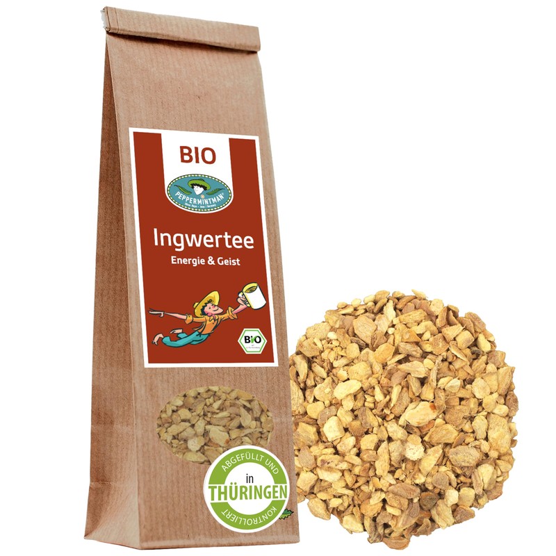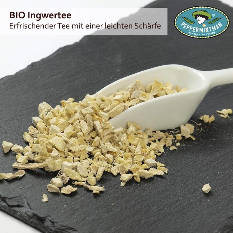 Organic Ginger Tea 100 g - Pure Ginger Root - Ayurvedic Vitality Tea - Traditional - Refreshing - Light Sharpness - for Body and Mind - Peppermintman