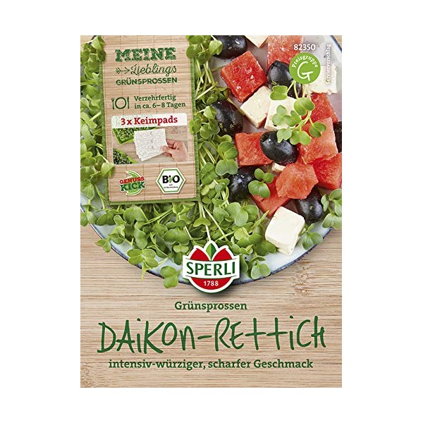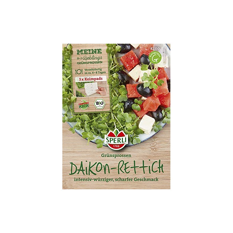 The Daikon radish rungs are very sharp and with an intense aroma. Simply place the germination pad in the green sprout growing set, pour daily with water and enjoy after a few days. A fresh bread with fresh cheese or a crisp salad – no matter how the sharpness of radish rungs gives your meal a certain pepp. Winter hard: no organic: yes harvesting time: all year life: one year sowing time: direct seed: all year round.