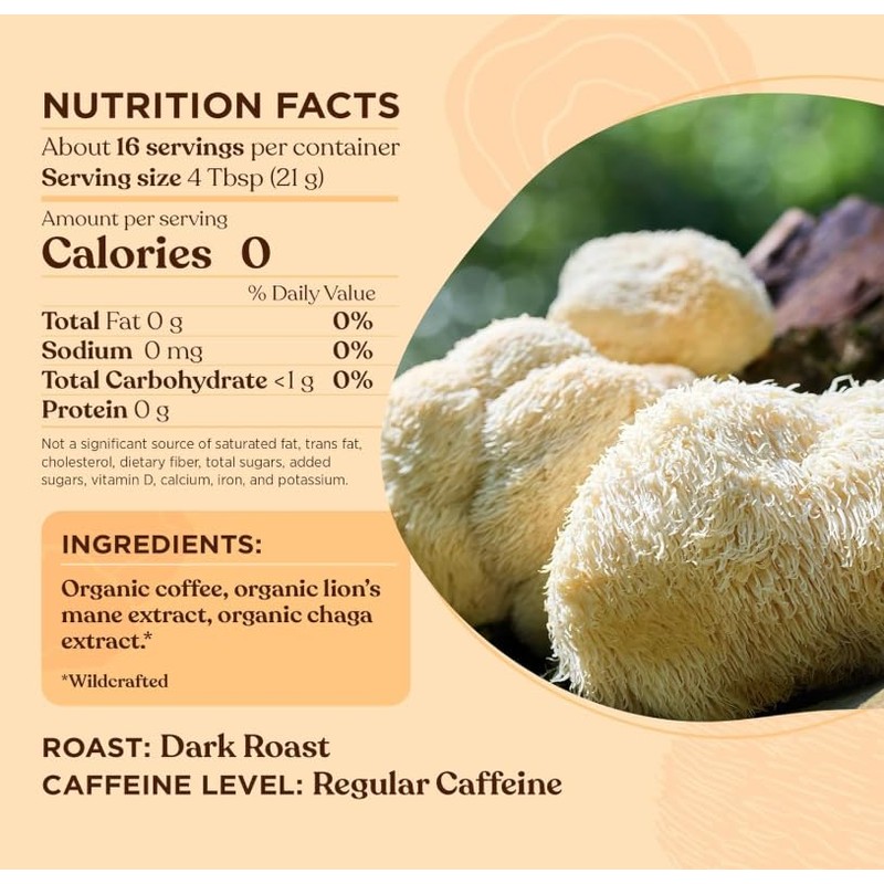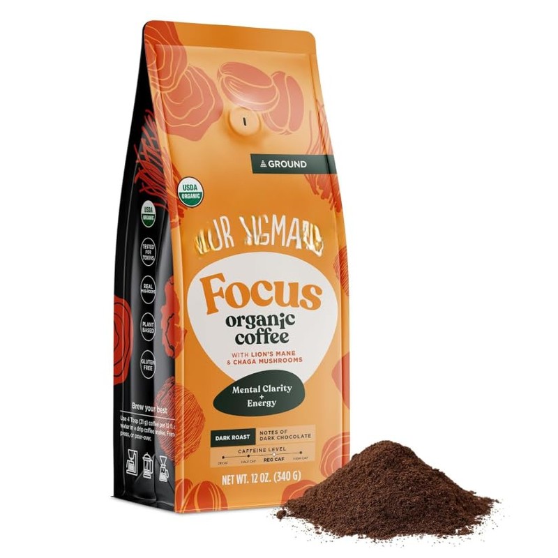 Organic Ground Coffee with Lion's Mane and Chaga Mushrooms – 340g – Focus and Immune Support – Dark Roast