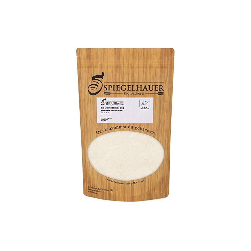 - Guar gum is commonly used as flour in gluten-free recipes and products. In baked goods, it can increase dough yield and elasticity. As well as an improvement in texture and durability can be possible. Binding agent 200 g