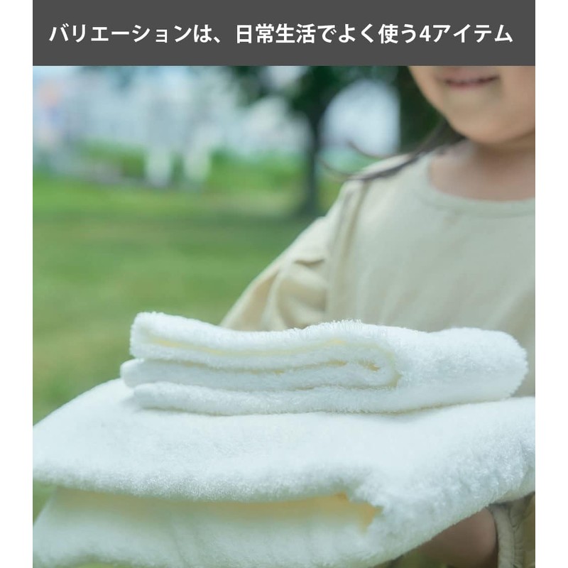 All impurities such as glue and oil on the thread, are bleached and washed with water, so you can use a freshly grated towel as it is, and this towel is highly absorbent and gentle on the skin.