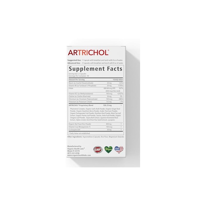 Organic Health Labs ARTRICHOL®- Arteries, Cholesterol & Triglycerides - 60 Veggie Capsules
