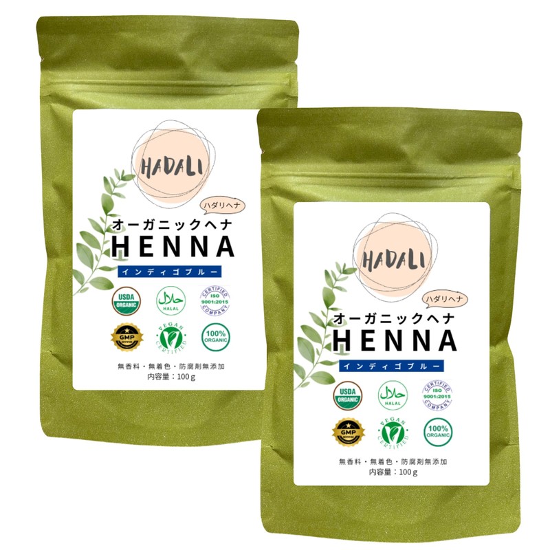 Organic Henna HADALI HENNA Hair Dye Halal Vegan (Indigo Blue, 3.5 oz (100 g) x 2 Bags)