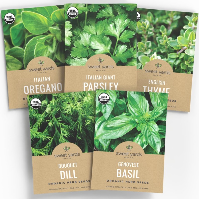 Organic Herb Seeds Variety Pack - 5 Individual Packs - 2025 Season - Basil, Oregano, Dill, Thyme & Parsley. for Indoor & Outdoor Planting (Non-GMO, Certified Organic)