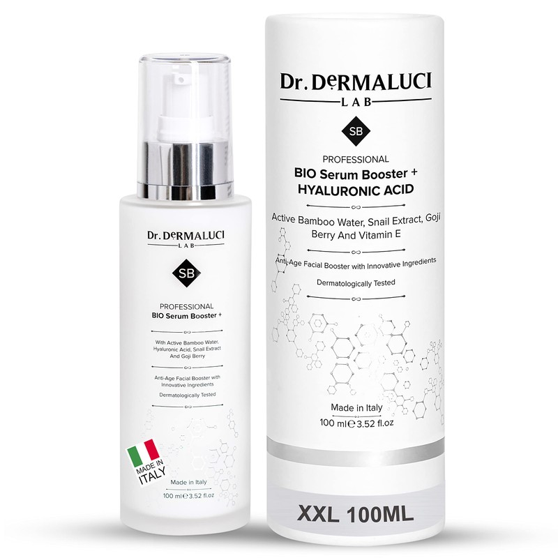 - Organic booster face serum hyaluronic acid Dr. Dermaluci Lab - is a cosmetic product that is very similar to a serum, but differs from it in one essential aspect: it is an enhancer, a potentiator of treatments. It can be used alone or in combination with other products to enhance their effectiveness.
