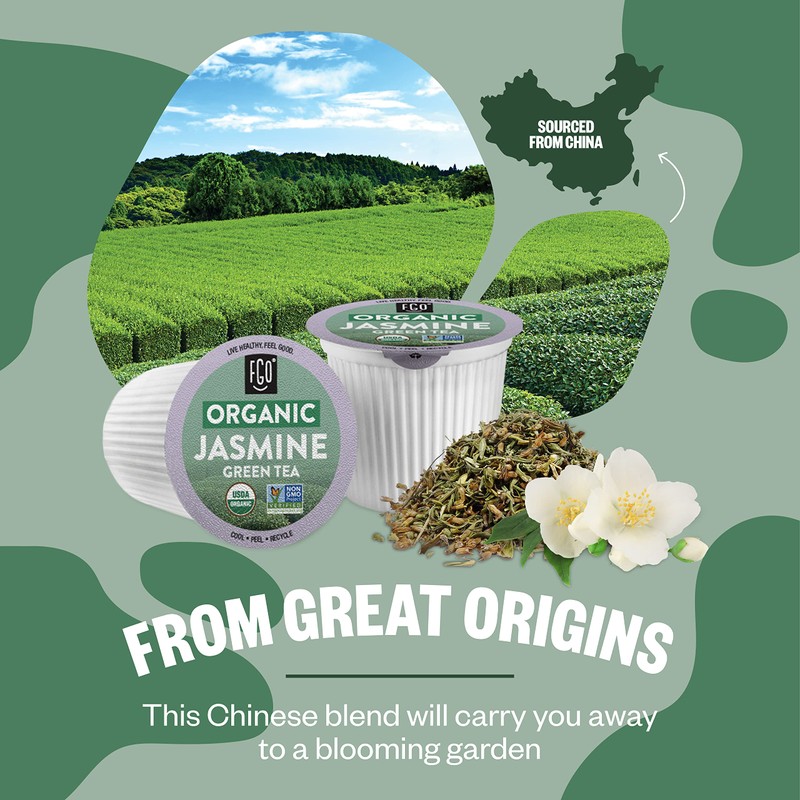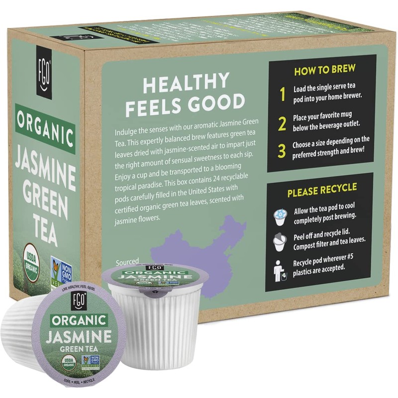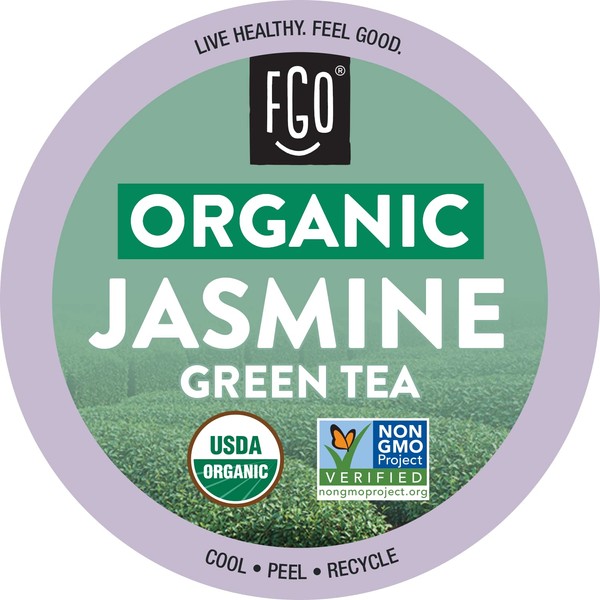 FGO Organic Jasmine Green Tea K-Cup Pods for Keurig, 24 Count (Pack of 1), Premium Green Tea is USDA Organic, Non-GMO, & Recyclable with Naturally Occurring Caffeine