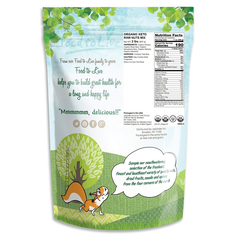 Organic Keto Raw Nuts Mix, 2 Pounds — Keto Snack Contains Non-GMO Brazil Nuts, Pecans, Walnuts, Hazelnuts and Macadamia Nuts, Low Carb Vegan Superfood, Kosher, Non-Irradiated, No Added Sugar, Bulk