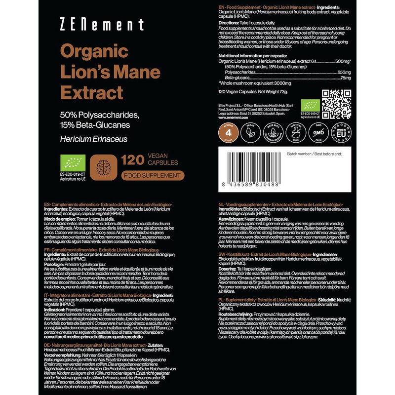 - Maximum Potency: Featuring a 6:1 extract ratio, you’re getting the equivalent of 12,000mg of Lion's Mane Mushroom in each serving. With 50% polysaccharides and 15% beta-glucan, you’re ensuring high bioavailability and effectiveness.