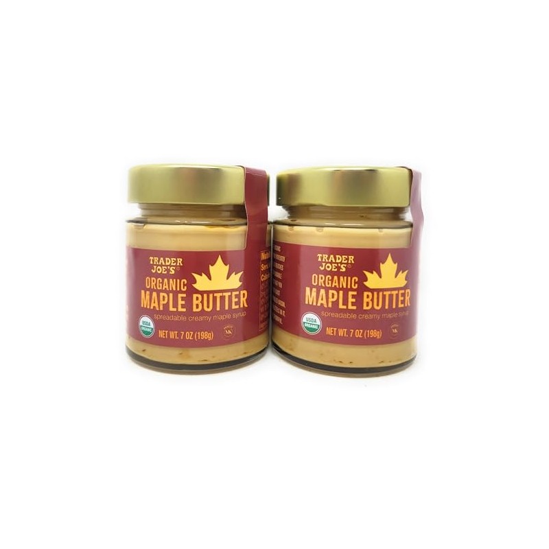 Organic maple butter, 7oz, Pack of 2 It’s fantastic on French toast, marvelous mixed into yogurt, and enchanting as an accompaniment to a cheese board (we particularly like it spread thin on a slice of sharp Cheddar). Don’t let us dictate how you use Trader Joe's Organic Maple Butter—feel free to let your imagination, and desire to make anything and everything sweeter and more maple-y, soar.