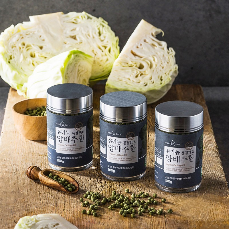 Organic Maru freeze-dried organic cabbage pills, 5 bottles of 100g / 유기농마루 동결건조공법 유기농 양배추환 100g 5병