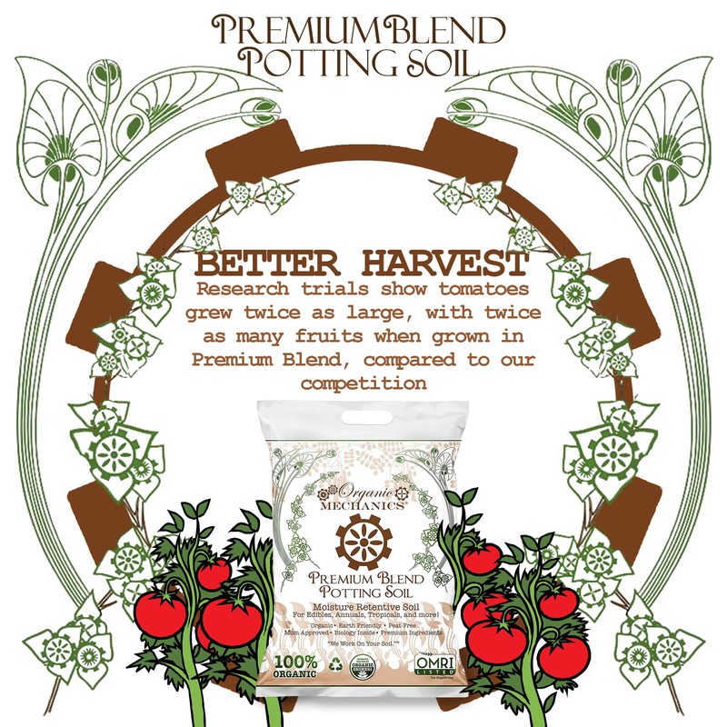 Experience gardening success with our premium potting soil blend designed for organic vegetables, herbs, and flowers. This versatile premium blend potting soil is ideal for repotting plants, filling window boxes, tending to small outdoor containers, and enhancing hanging baskets. Enriched with a natural fertilizer, it offers a balanced combination of fast and slow-release nitrogen feeding. Featuring water-holding crystals that can store up to 200 times their weight in water, this soil reduces the need for frequent watering and ensures a consistent moisture supply for your plants. Research trials reveal that tomatoes grown in this blend exhibited double the size and twice as many fruits compared to those grown with competitor products.