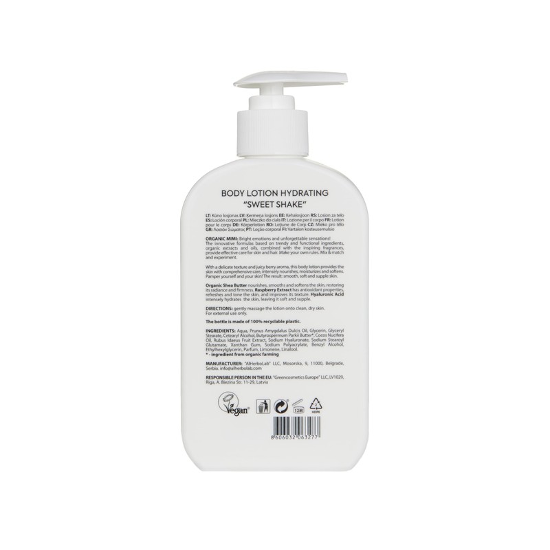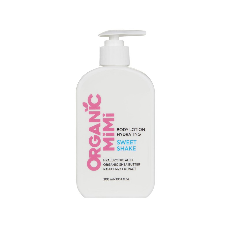 Organic Mimi Body Lotion – Hydrating, Nourishing – with Shea Butter, Raspberry Extract & Hyaluronic Acid – Vegan & Organic Skincare – Sweet Shake – 300 ml