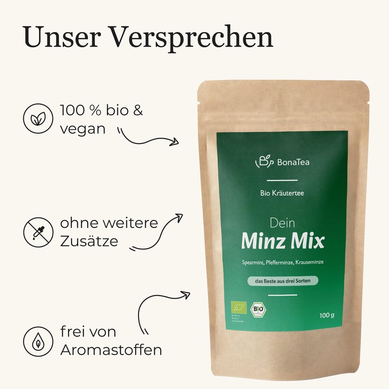 - Perfectly matched: no matter how the harvest turns out – our tea experts at BonaTea match the individual mint varieties perfectly so that you can enjoy the best mint taste at any time.