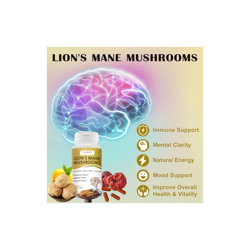 Organic Mushroom Complex Capsules with Lion's Mane, Cordyceps, Reishi, Help for Cognitive Focus, Immune Support & Brain Health, Vegan, Non-GMO, 90 Capsules