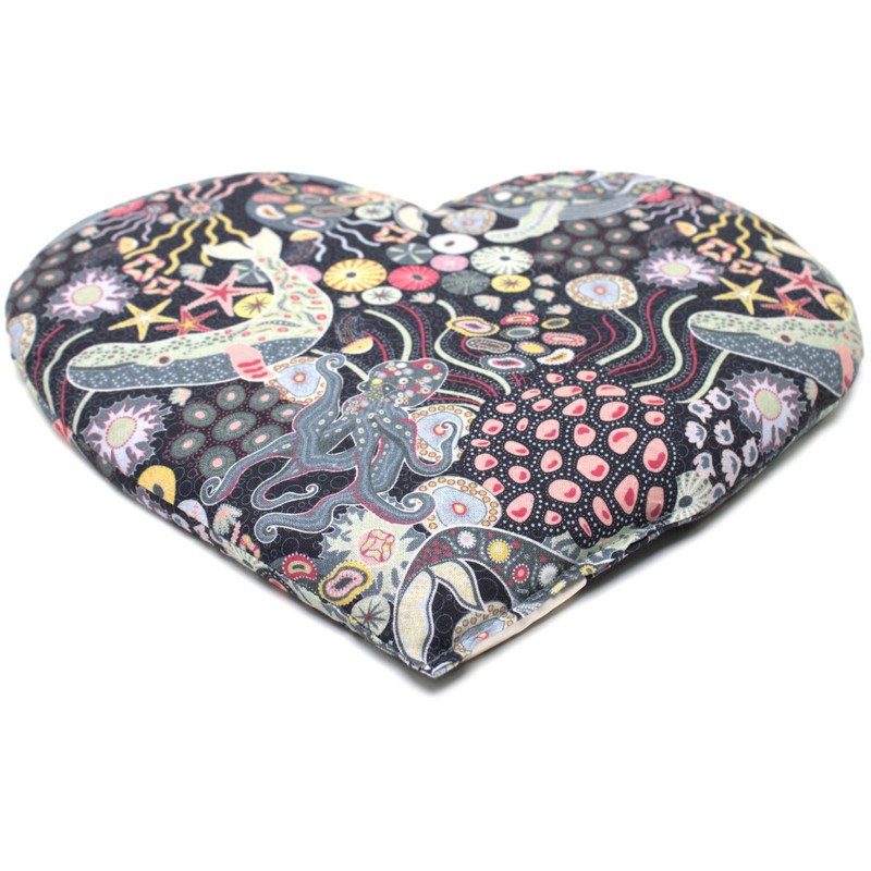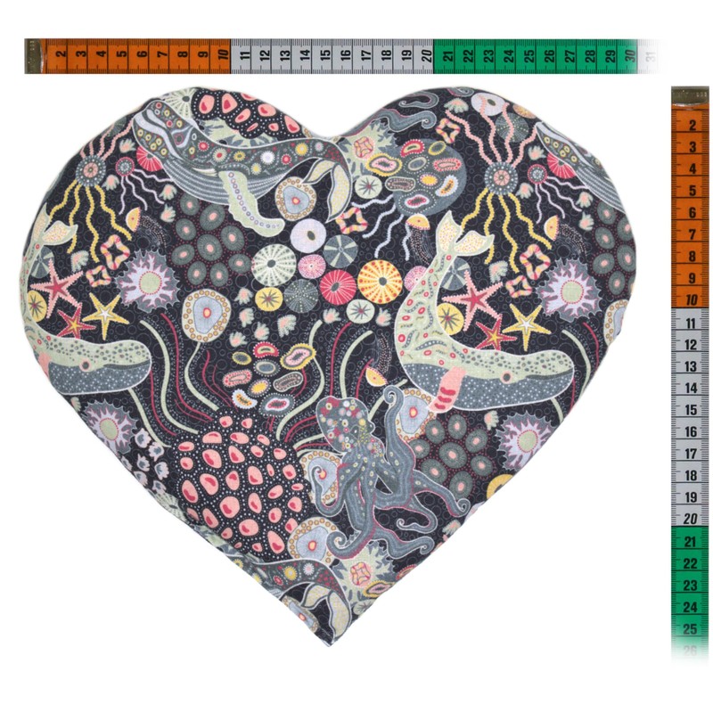 Organic Spelt Cushion Heart Approx. 30 x 25 cm – Organic Filling & Organic Fabric Underwater – Heat Cushion – Grain Cushion – A Charming Gift